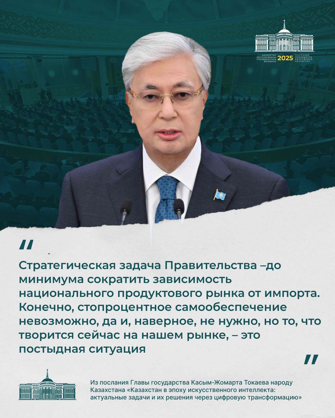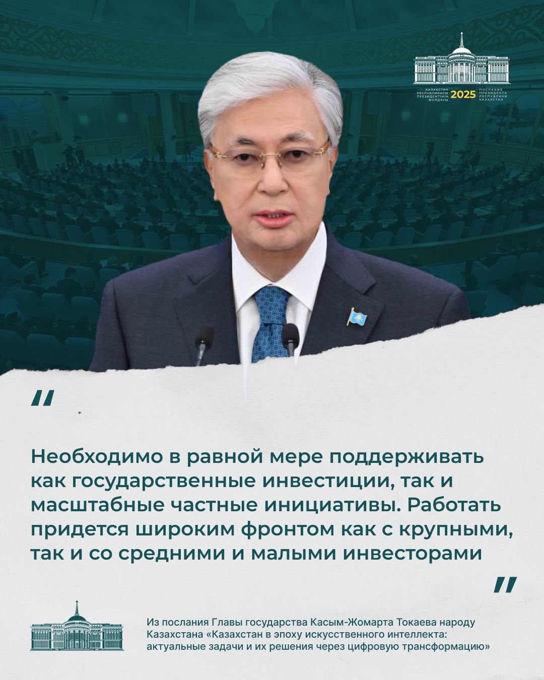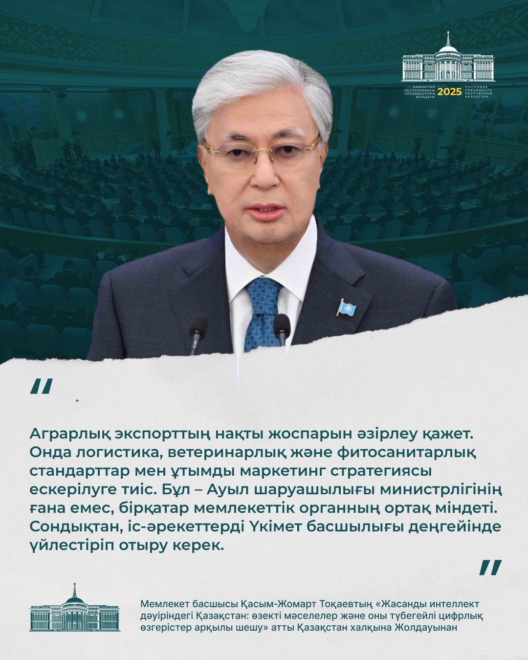 – Бұл технология әлемдегі барлық елдің дамуына тікелей әсер етуде. Қазір онсыз жаһандық бәсекеге төтеп беру мүмкін емес. Озық технологиялар ұлт дербестігінің кепіліне, экономикалық өсімнің қозғаушы күшіне айналуда. Біз жасанды интеллект саласында бірқатар жетістікке қол жеткіздік, бірақ босаңсуға болмайды. Осы стратегиялық бағытта табанды жұмыс істеуіміз керек. Бұл жұмысқа мен ең маңызды басымдықтың бірі ретінде қараймын. Біріккен Ұлттар Ұйымының Сауда және даму жөніндегі конференциясының (UNCTAD) болжамы бойынша 2033 жылға қарай жасанды интеллект нарығының ауқымы 4,8 триллион долларға жетуі мүмкін. Ал оның ғаламдық технологиялық индустриядағы үлесі 7 пайыздан 29 пайызға дейін артады. Бұл, әрине, теңдесі жоқ өсім болмақ. Жасанды интеллект дамудың жаңа мүмкіндіктеріне кеңінен жол ашады, – деді Мемлекет басшысы.