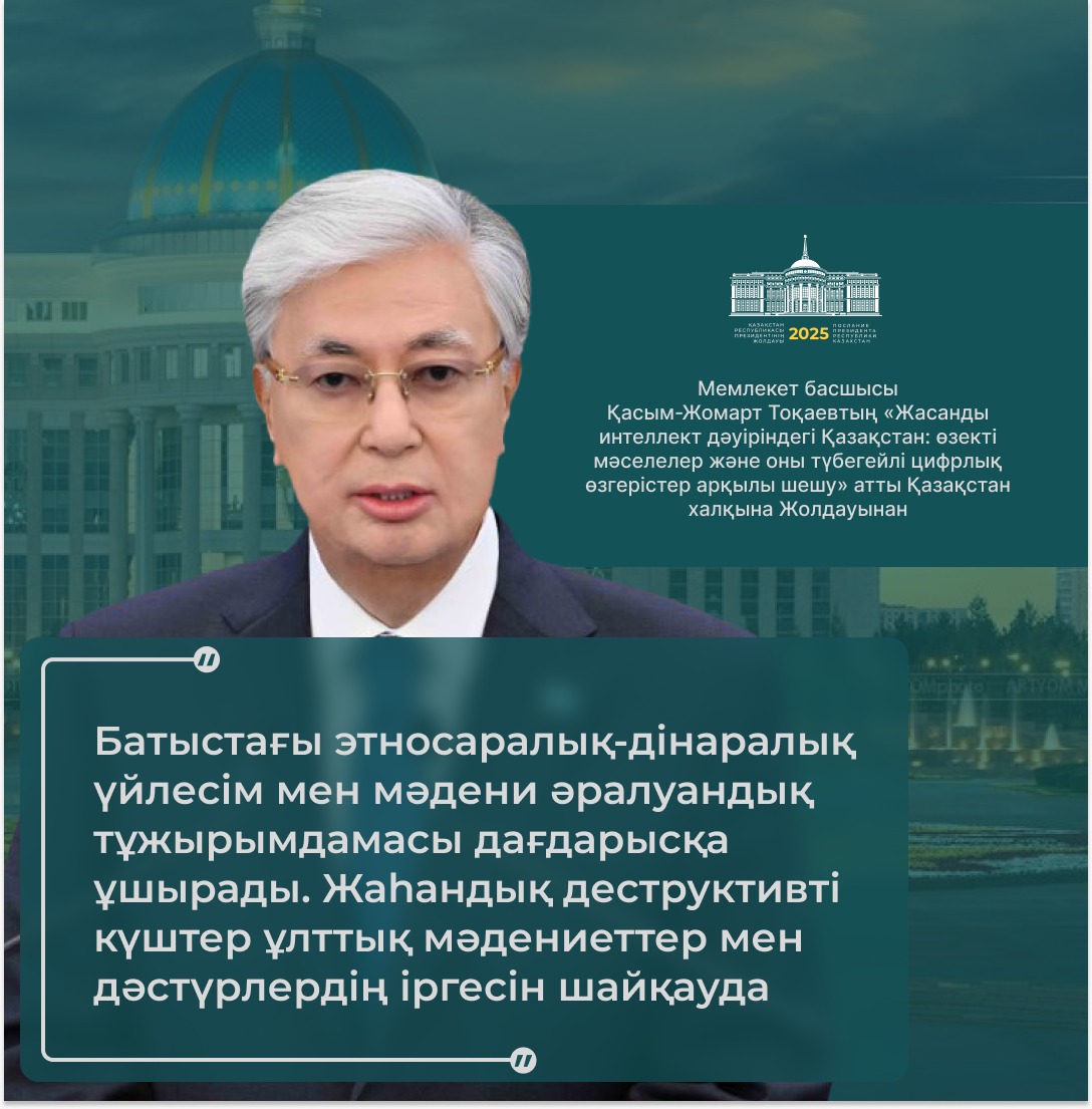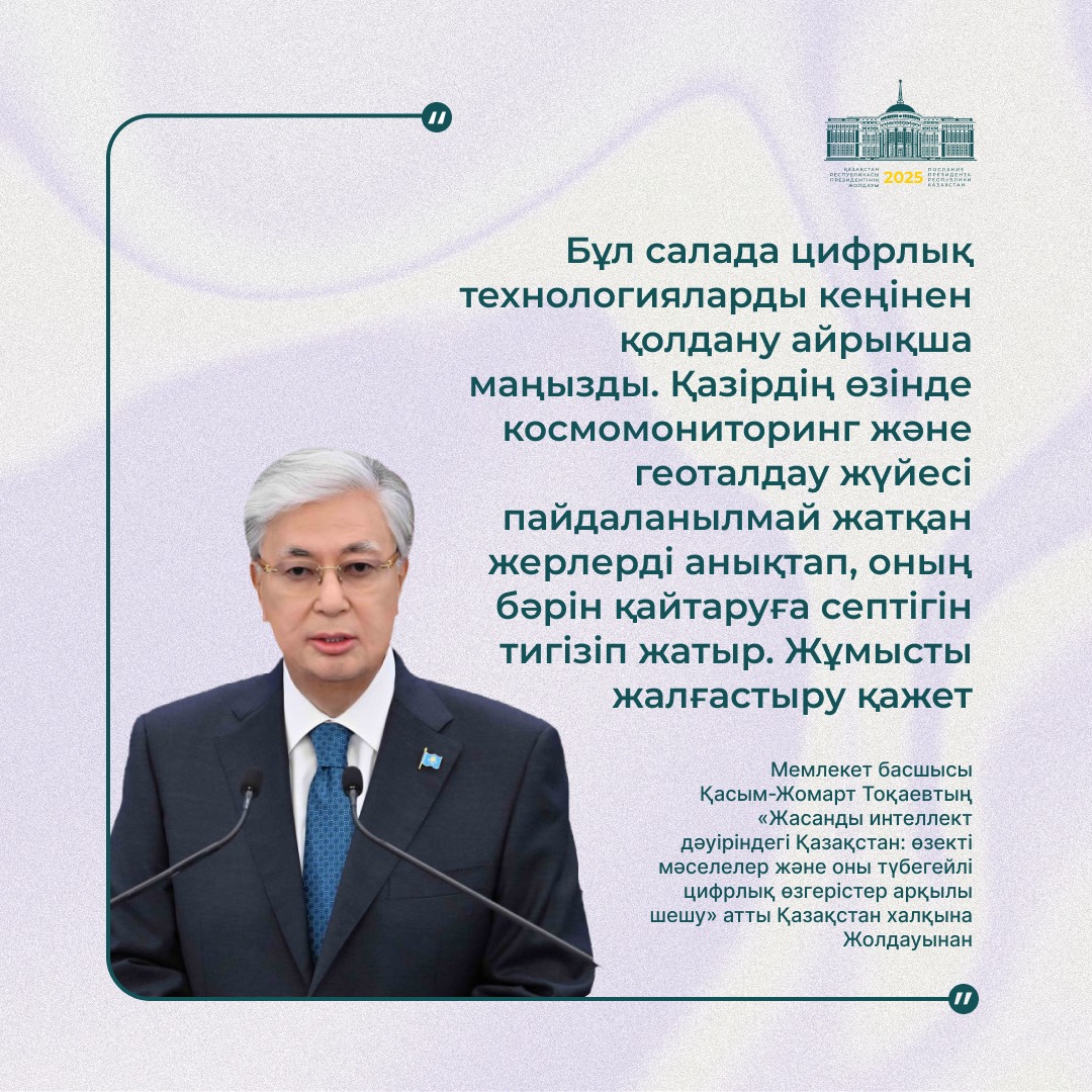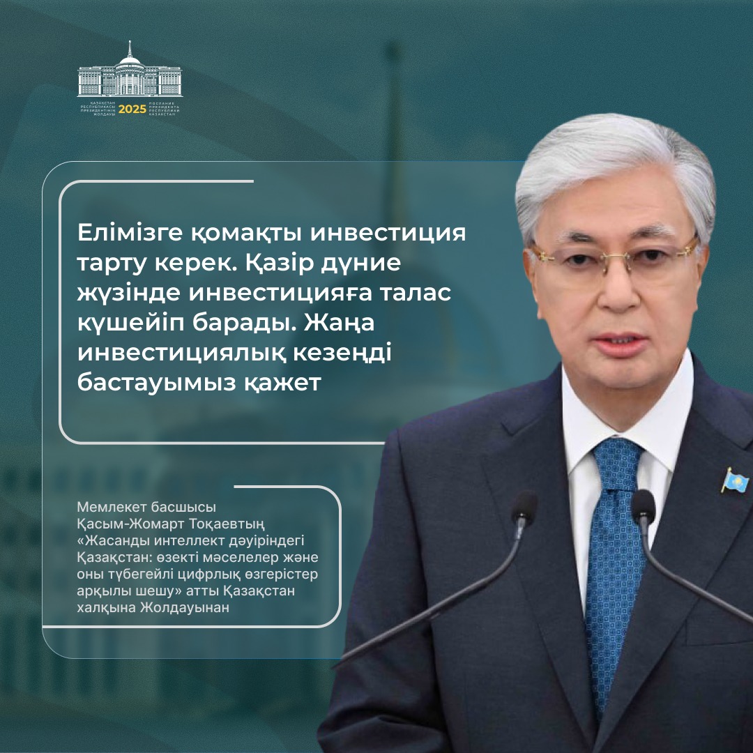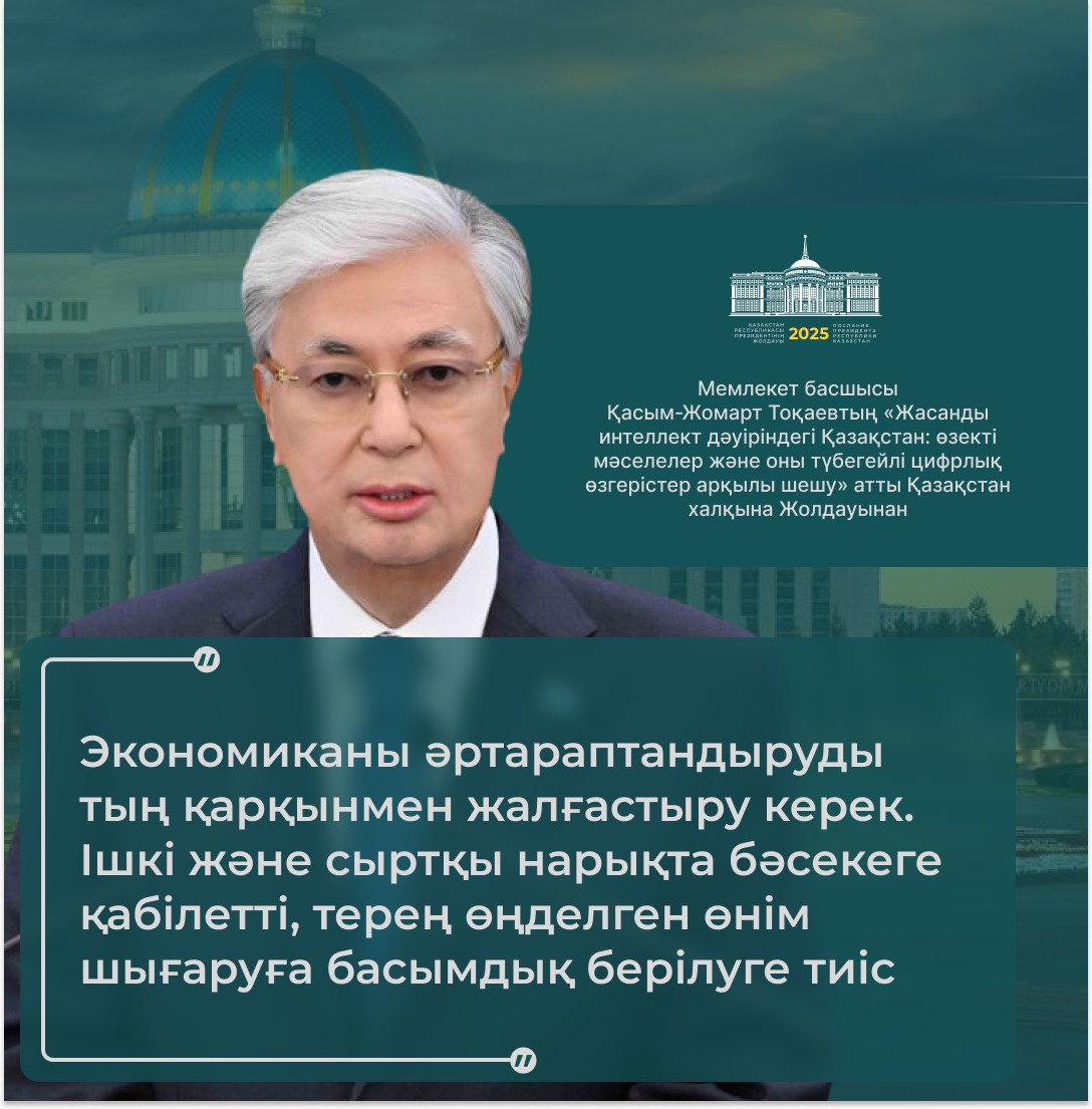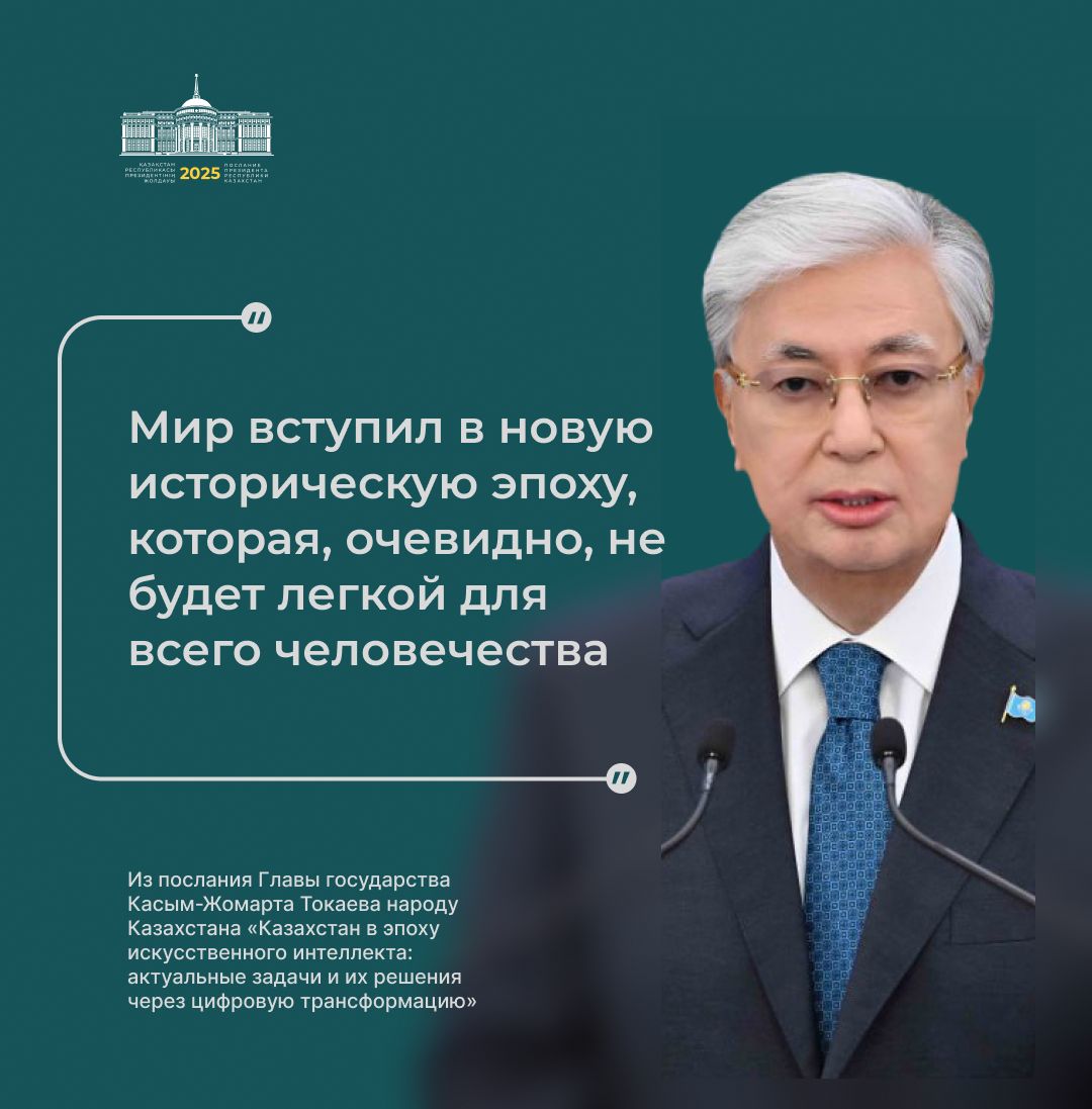 Президент қазір дүние жүзінде жасанды интеллектінің қарқынды дамуына байланысты сипаты мүлде жаңа технологиялық өзгерістер болып жатқанын атап өтті.
