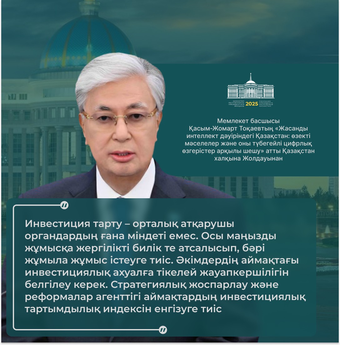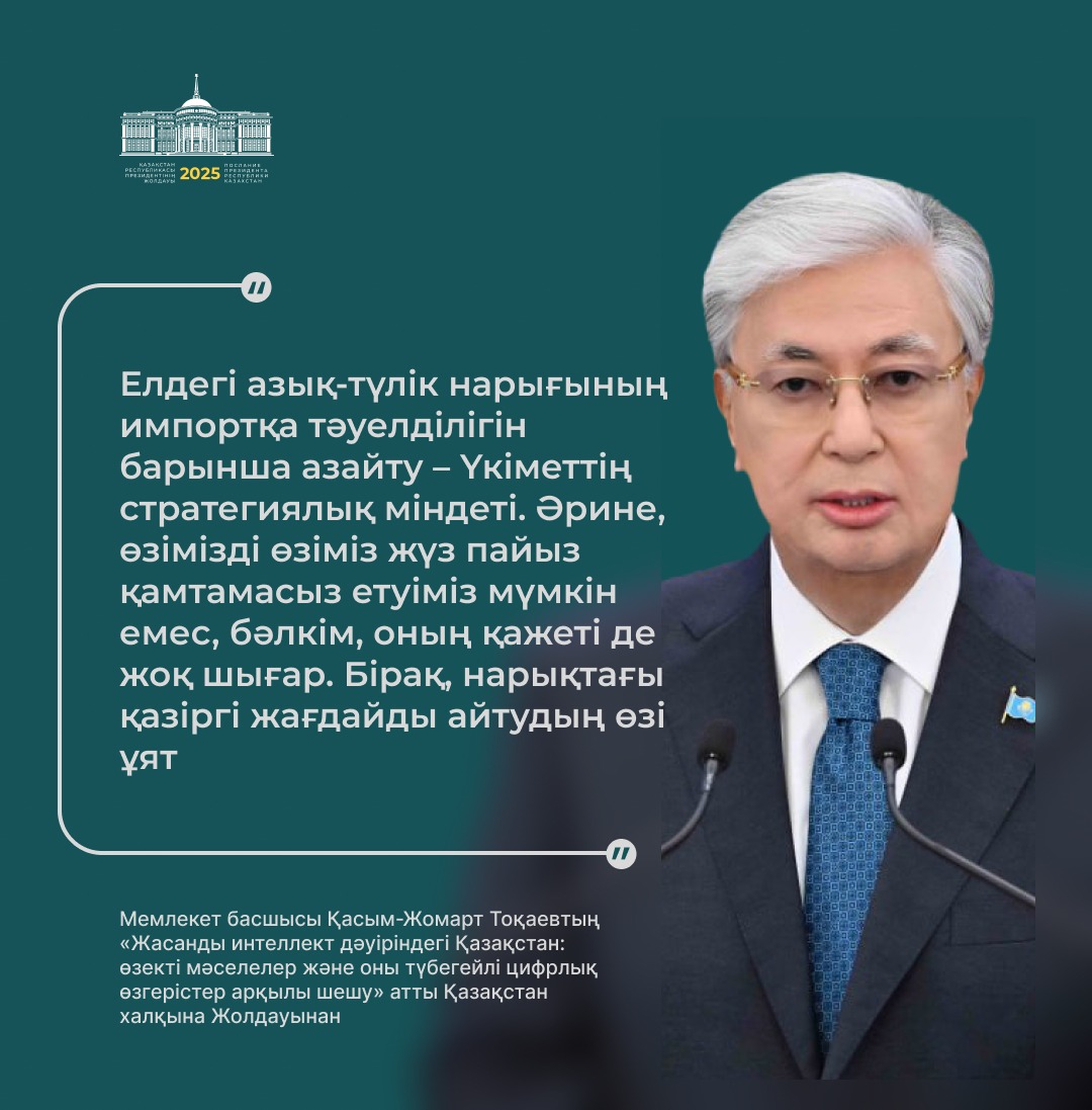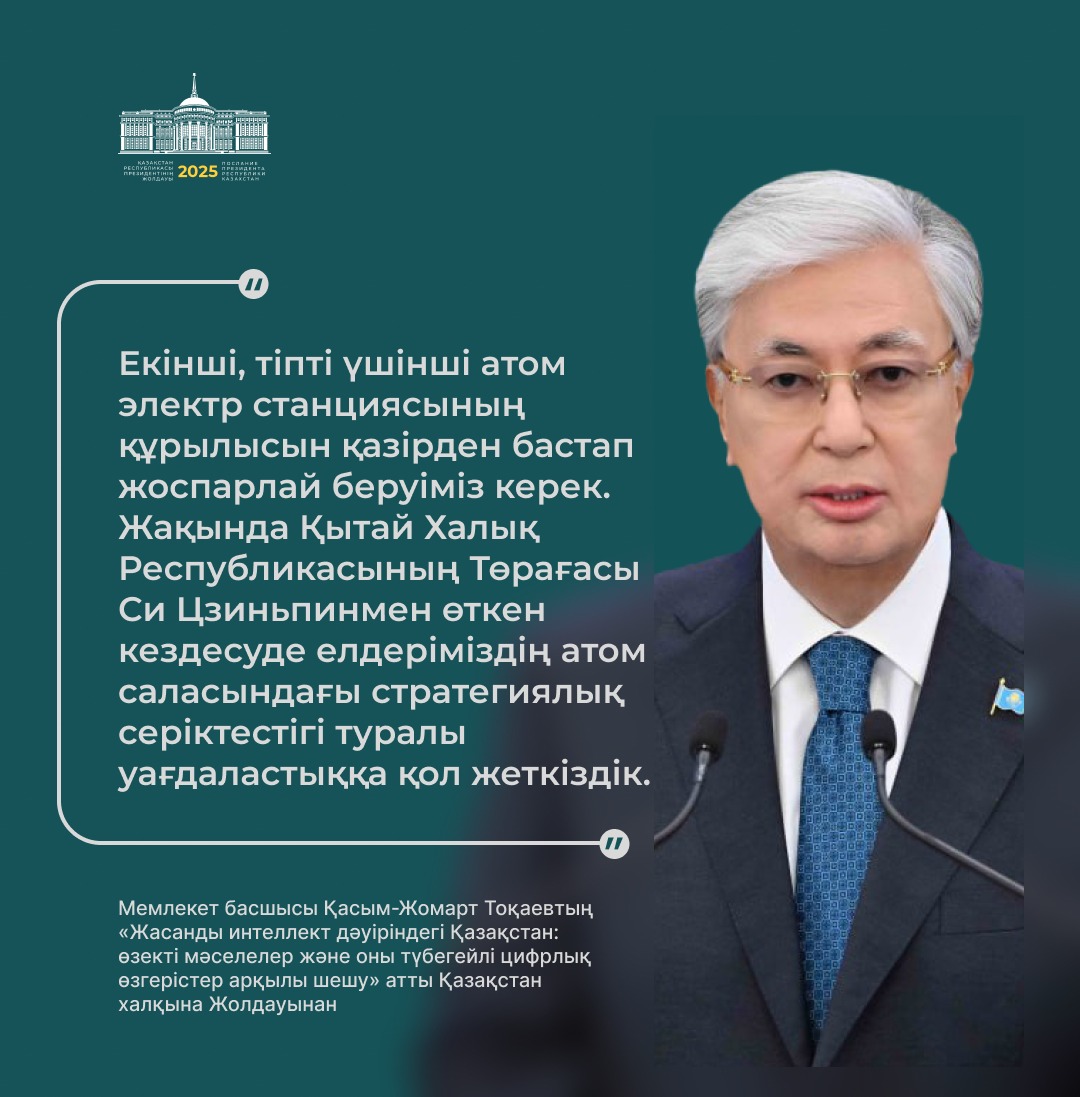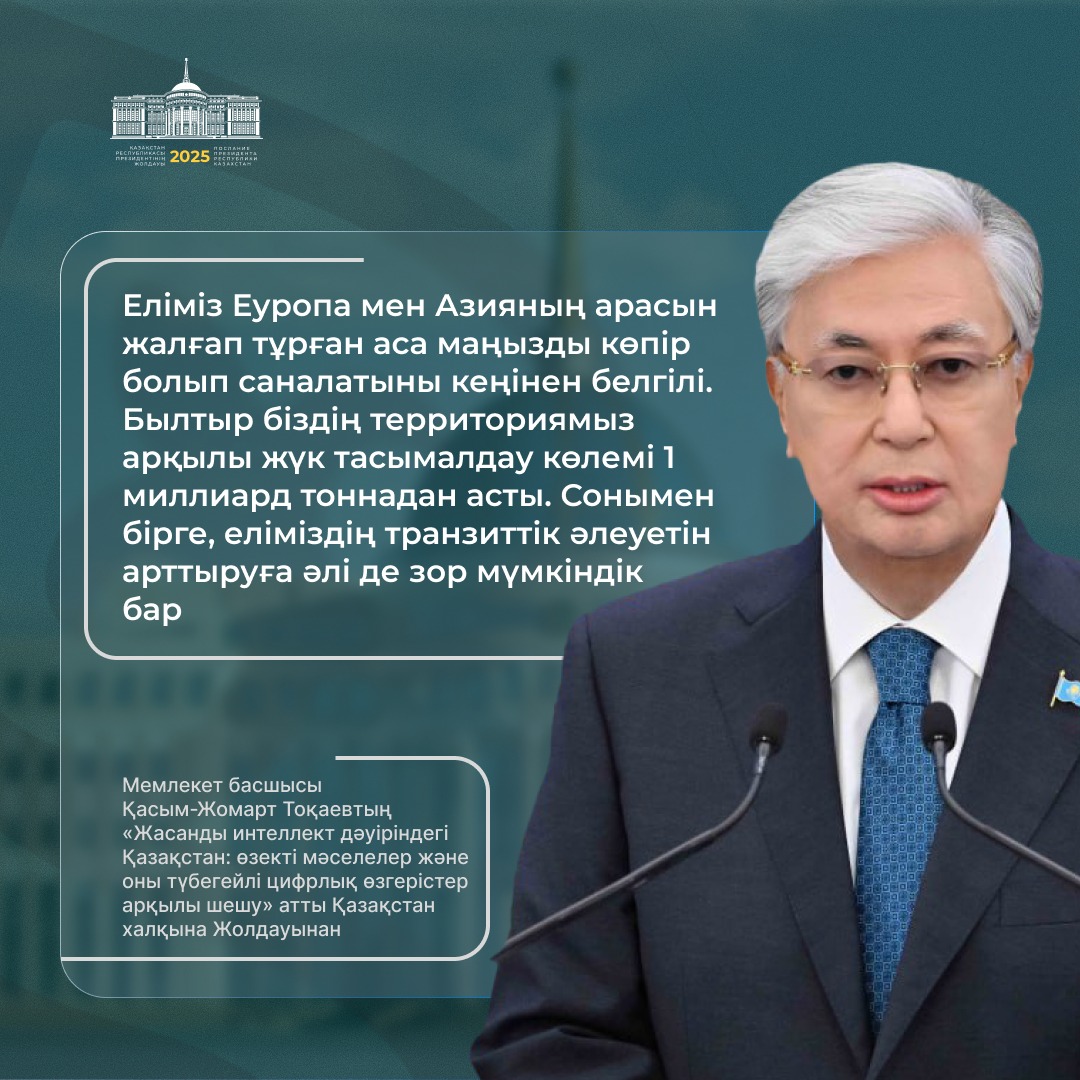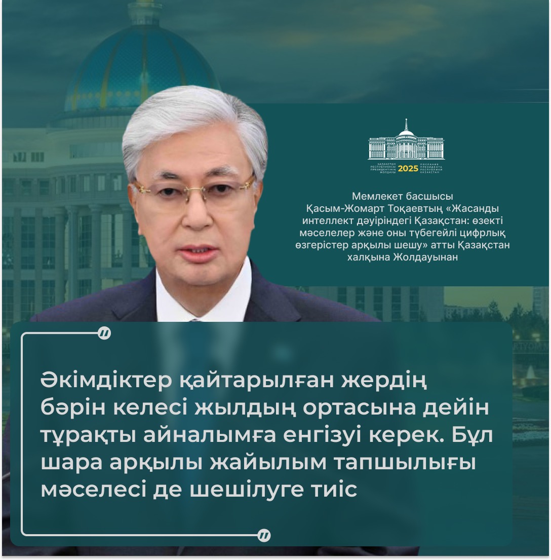 Президент қазір дүние жүзінде жасанды интеллектінің қарқынды дамуына байланысты сипаты мүлде жаңа технологиялық өзгерістер болып жатқанын атап өтті.
