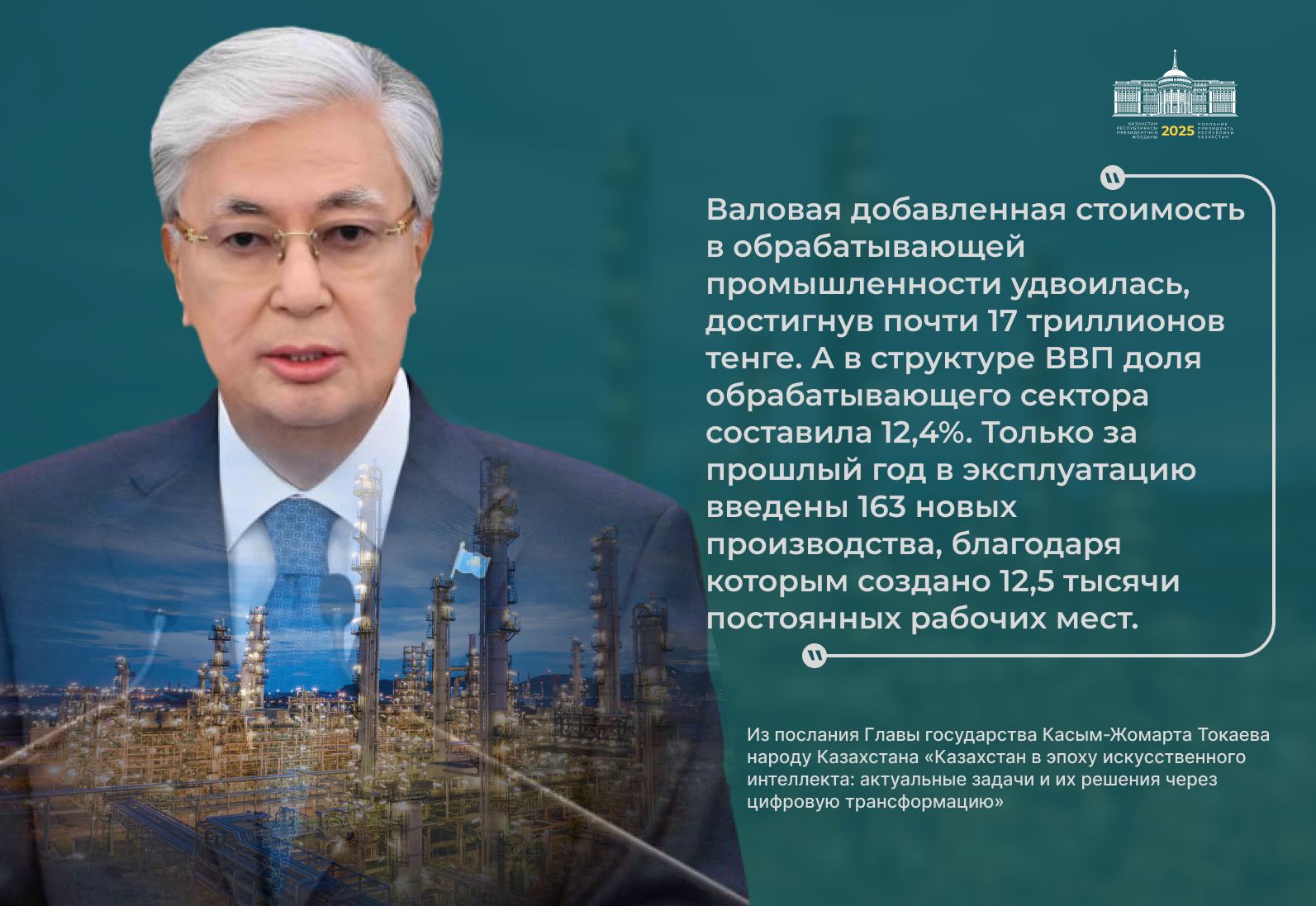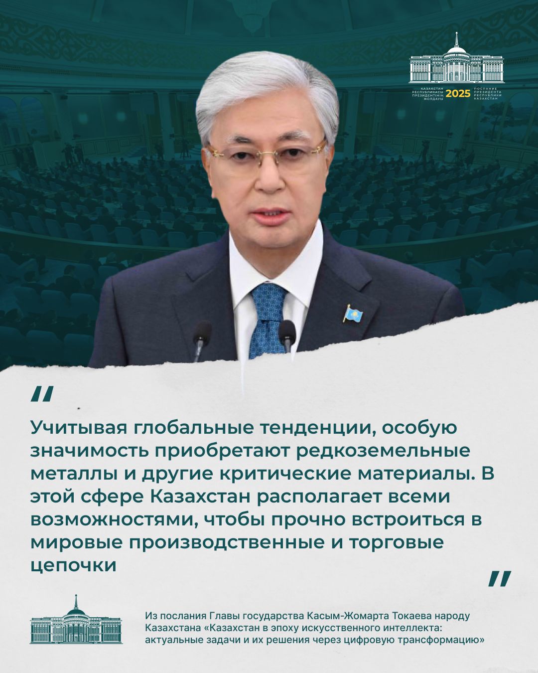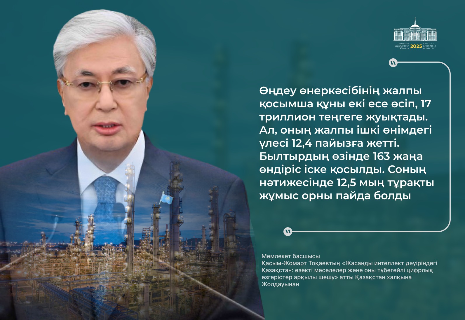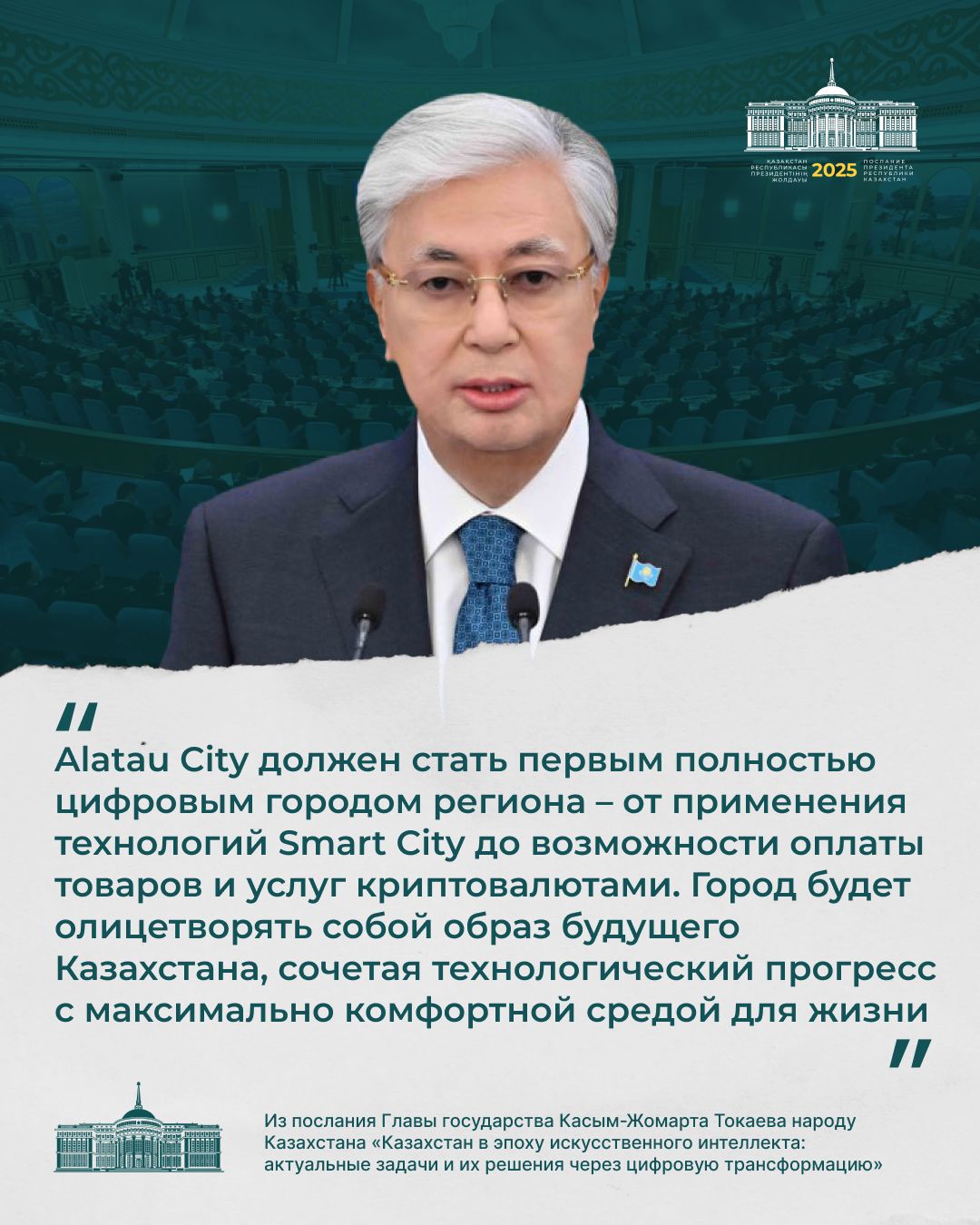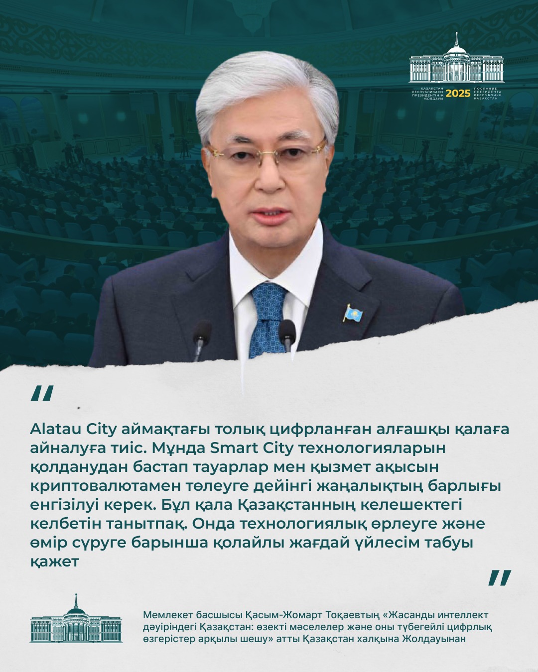 Президент қазір дүние жүзінде жасанды интеллектінің қарқынды дамуына байланысты сипаты мүлде жаңа технологиялық өзгерістер болып жатқанын атап өтті.