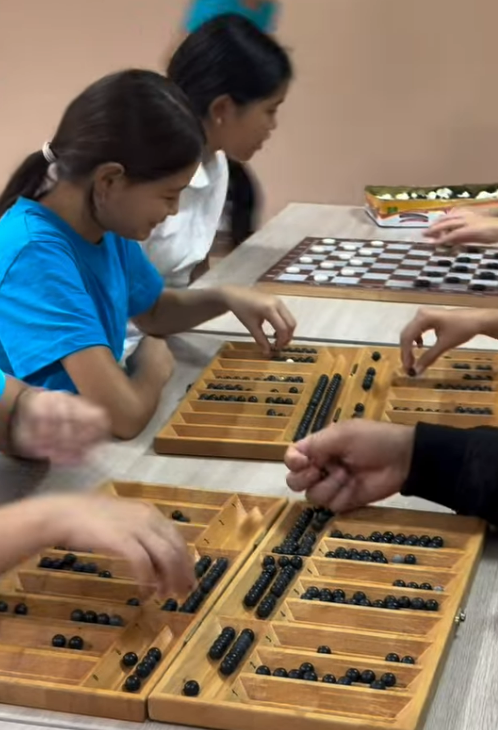 Үзіліс кезінде оқушылар қазақтың төл зияткерлік және күштік ойындары – шахмат, тоғызқұмалақ пен арқан тартуға қатысып, өзара сайысқа түседі. Осындай ұлттық ойындар арқылы оқушылардың ойлау қабілеті, ептілігі мен бірлігі арта түседі.