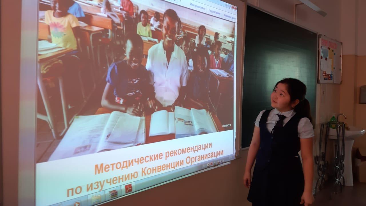2019 жылдың 13 қарашасында дүние жүзілік «Бүгінгі шақ және болашақ: әр бала үшін қорғанысты қаматамасыз ететін балалық шақ" атты тәрбие сағаты 4,5,8,9,10,11 сыныптар арасында 1 ауысым бойынша өткізілді.
