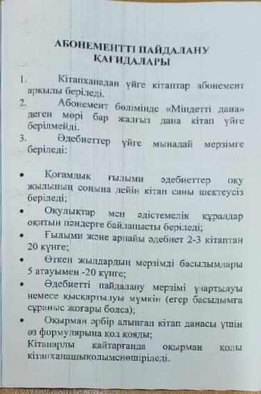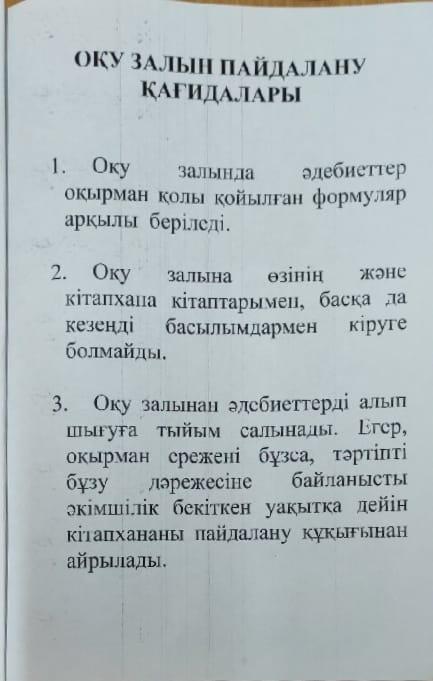 10 сентябрь 2020 20 1 2 3 4 5 құқықтар мен міндеттер 1. Кітапхананың міндеттері мен құқықтары.2. Оқырман құқықтары мен міндеттері.3. Абонементті пайдалану қағыдаттарыОқу залын пайдалану қағидаттары. Осы беттің QR-коды:QR-код этой страницы: