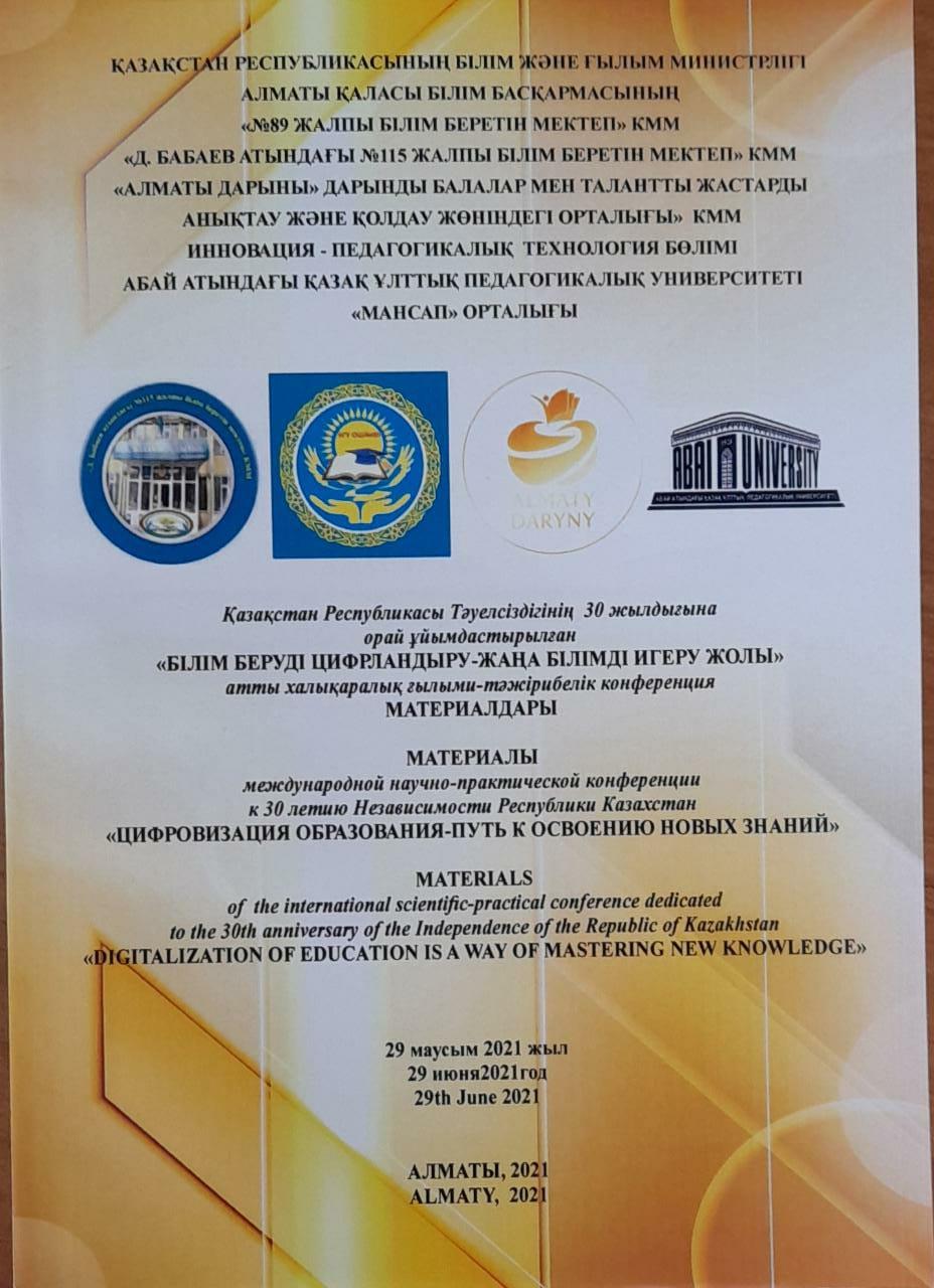 16 июль 2021 0 1 2 3 4 5 Еңбегі жарияланды "Білім беруді цифрландыру -жаңабілімді игеру жолы" атты халықаралық ғылыми- тәжірибелік конференция марериалдары Шындаулетова Назгул. Осы беттің QR-коды:QR-код этой страницы: