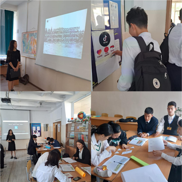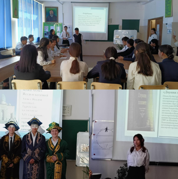 " Оқушы-мұғалім" жобасы бойынша 10"Ә" сынып оқушысы Құмар Айнұр " Практикум. Жобаны әзірлеу және қорғау" тақырыбында сабақ өтілді. Пән мұғалімі: Казиева А. 10 "Ә" сыныбында Қазақстан тарихы пәнінен Адилгазина Жансая сабақ өткізді. Пән мұғалімі:Терлекбаева П.А. 10 "А" сыныбында Дүниежүзі тарихы пәнінен Ауған Құнар сабақ өткіздіПән мұғалімі:Терлекбаева П.А. 10"Б"сынып оқушысы Әбдіуәли Әбілмансур "Бактериялар, саңырауқұлақтар жасушасының құрылысы мен қызметінің ерекшеліктері" тақырыбында сабақ өткізді. 10"А" сынып оқушысы Серікбаев Жұбаныш "Бактериялар, саңырауқұлақтар жасушасының құрылысы мен қызметінің ерекшеліктері " тақырыбында сабақ өткізді. 10"Ә" сынып білім алушысы Данен Сымбат қазақ тілі пәнінен сабақ өтті. 10 "Б" сынып оқушысы Нұрсұлтанқызы Фатима "Оқушы-мұғалім " жобасы аясында география пәнінен сабақ өткізді. 9- сынып оқушыларының арасында "Қожа Ахмет Яссауи-мұсылмандардың рухани ұстазы" атты конференция өтті. Пән мұғалімі: Минахунова К.И. 10 “А” сынып оқушысы Ануарбек Айдана “Оқушы-мұғалім” жобасы аясында орыс тілі мен әдебиеті пәнінен сабақ өткізді. 10"Б"-сыныбында Алгебра ж/е анализ бастамалары пәнінен Мұрат Аида сабақ өтті.Сабақтың тақырыбы:"Кері тригонометриялық функциялардың графигі ж/е қасиеттері". Пән мұғалімі:Төребекова Г.Ә 10"А"-сынып оқушысы Балықбаева Алуа сабақ өтті.Сабақтың тақырыбы: "Кері тригонометриялық функциялардың графиктері мен қасиеттері". Пән мұғалімі:Төребекова Г.Ә