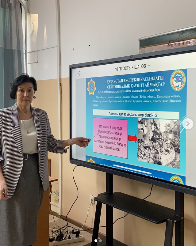 11б сынып оқушылары Қазақстан Республикасының сейсмикалық қауіпті аймақтары туралы танысуда.