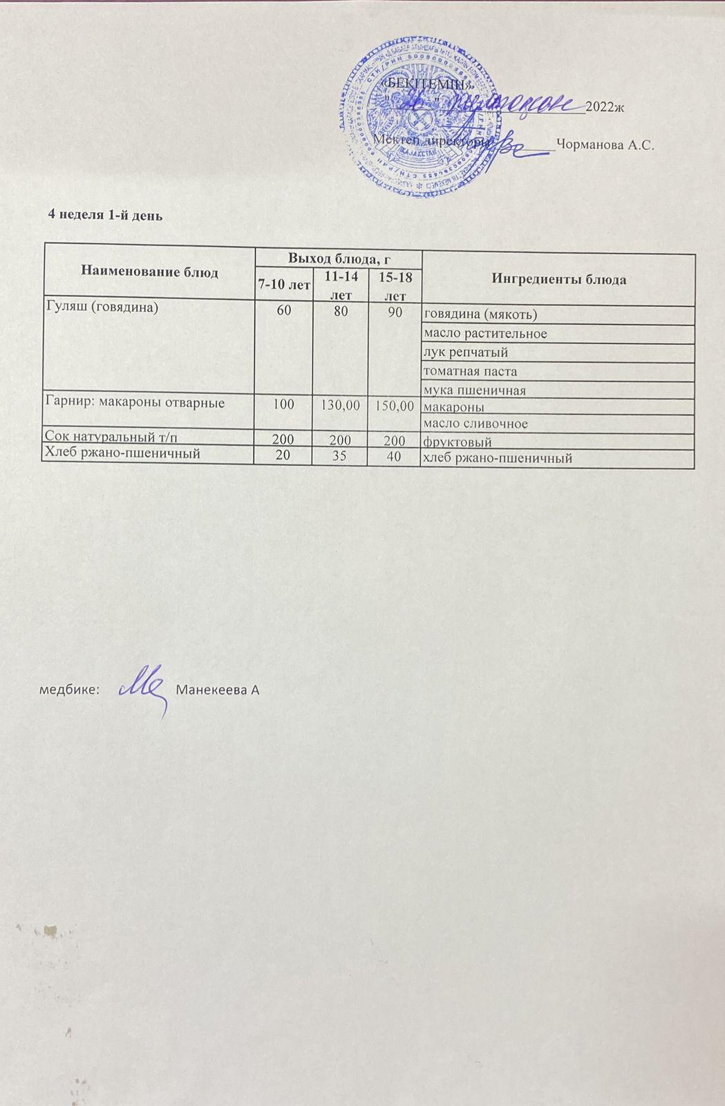 Күнделікті ас мәзірі 04.05.2022