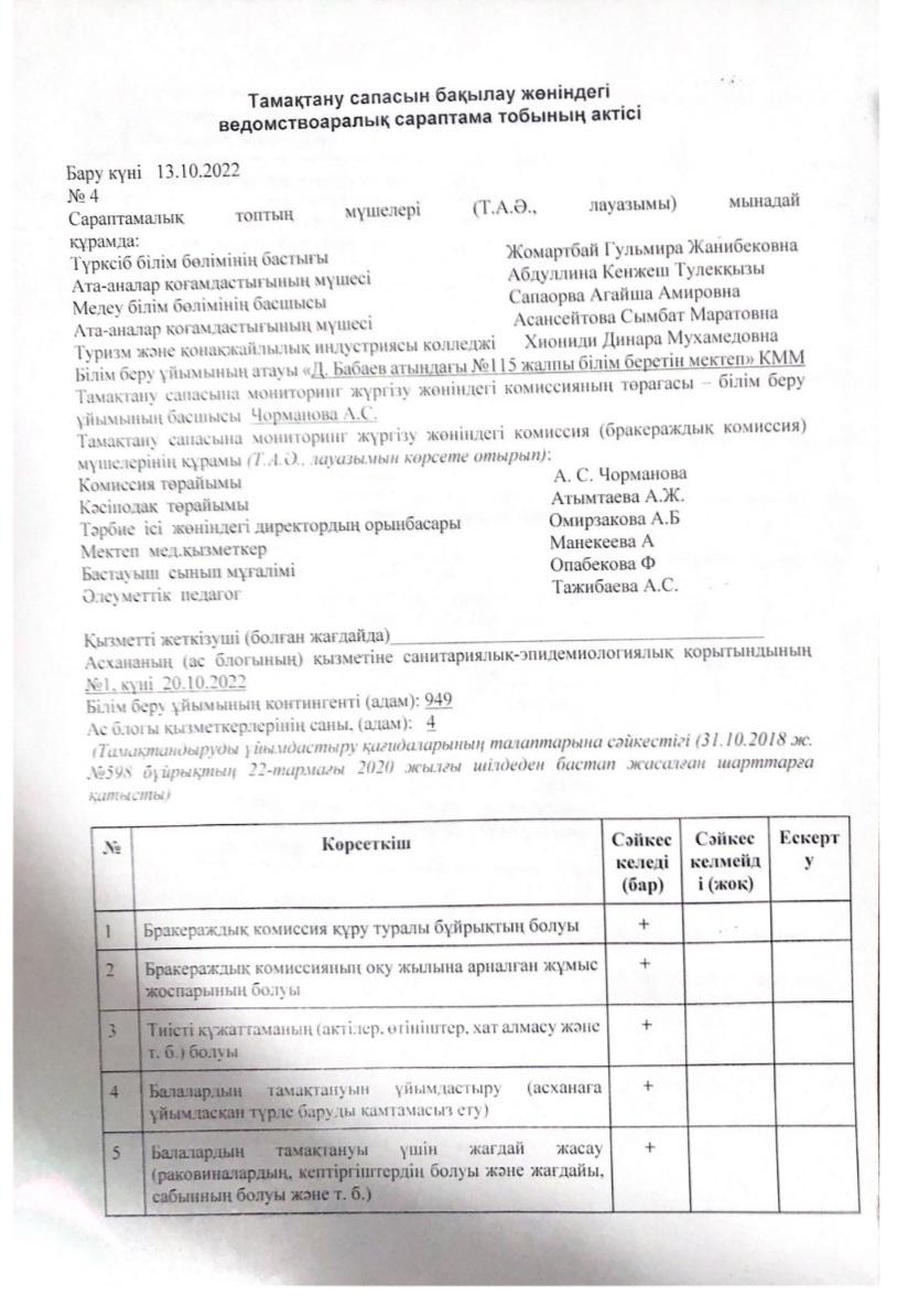 04 январь 2023 0 1 2 3 4 5 Тамақтану сапасын бақылау жөніндегі ведомствоаралық сараптама тобының актісі Осы беттің QR-коды:QR-код этой страницы: