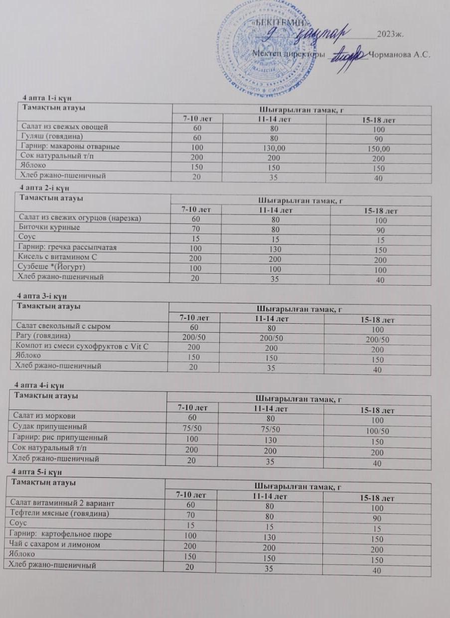 » 2023 жылдың 4 апталық ас мәзірі