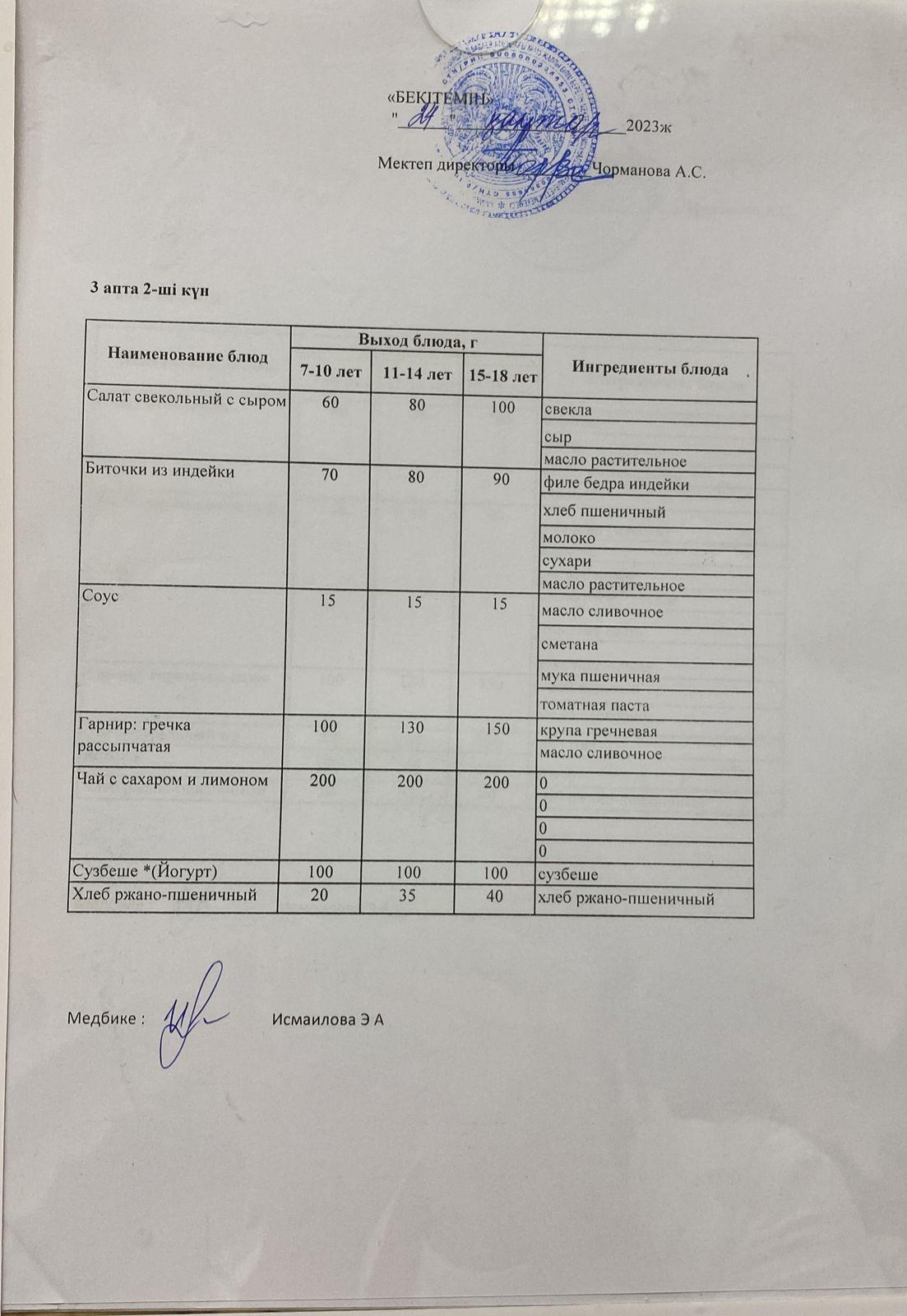 Күнделікті ас мәзірі 24.01.2023