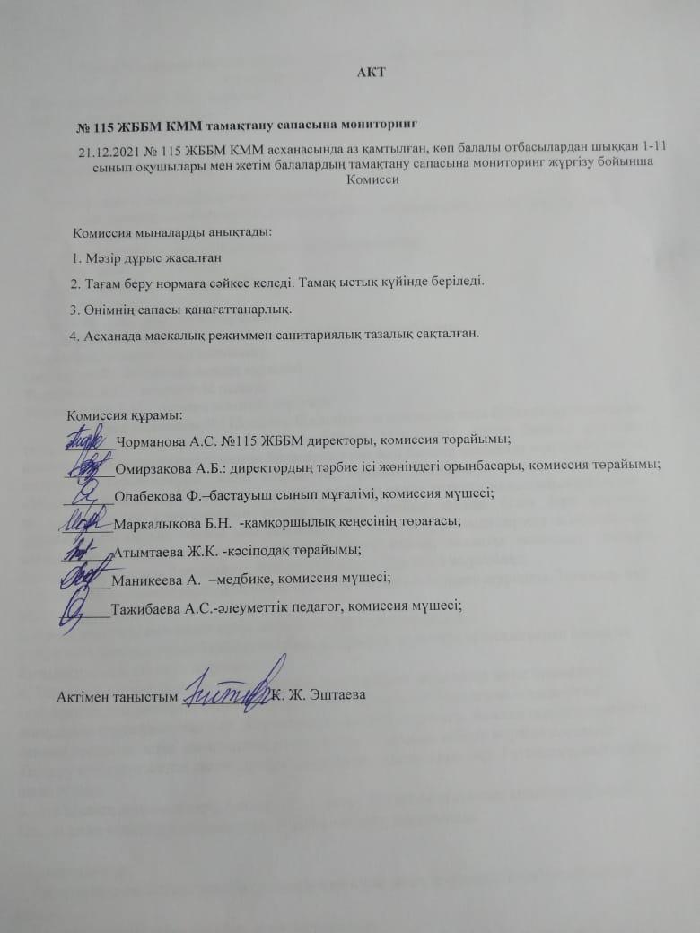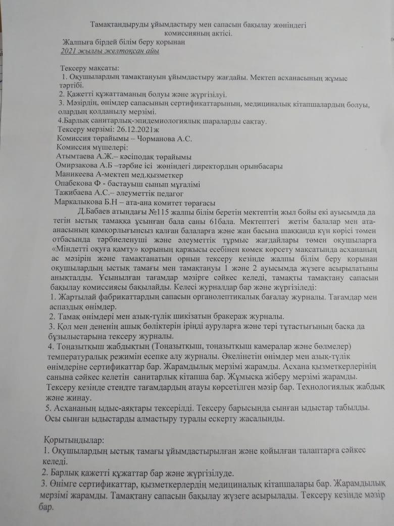 05 январь 2022 0 1 2 3 4 5 Тамақтандыруды ұйымдастыру мен сапасын бақылау жөніндегі комиссияның актісі. Осы беттің QR-коды:QR-код этой страницы: