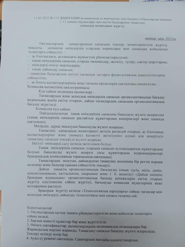 23 июнь 2022 0 1 2 3 4 5 Мамыр айы бойынша тамақтану сапасының мониторингісі Осы беттің QR-коды:QR-код этой страницы: