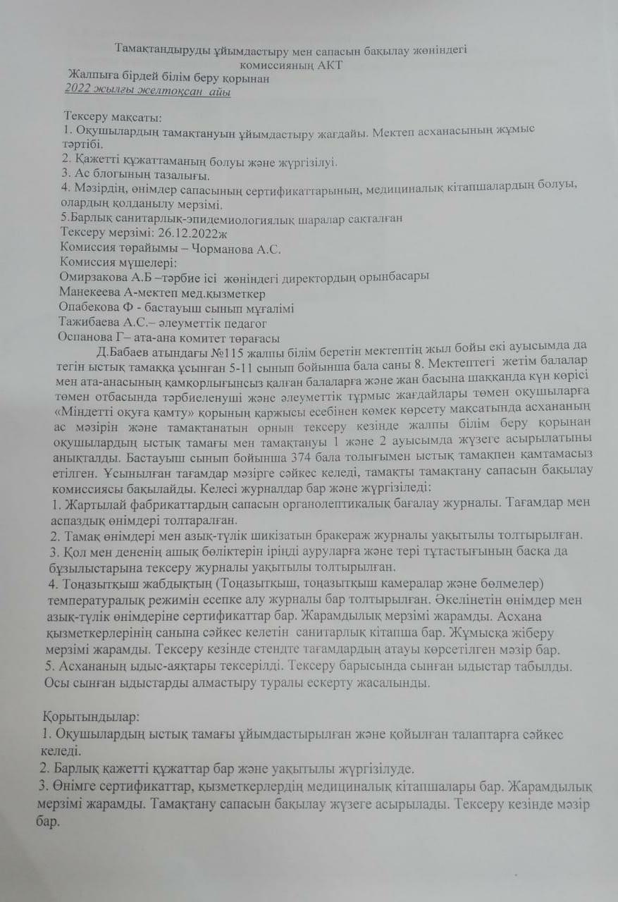 26 декабрь 2022 0 1 2 3 4 5 Тамақ сапасын бақылау жөніндегі мониторинг комиссияның АКТ-сі Осы беттің QR-коды:QR-код этой страницы: