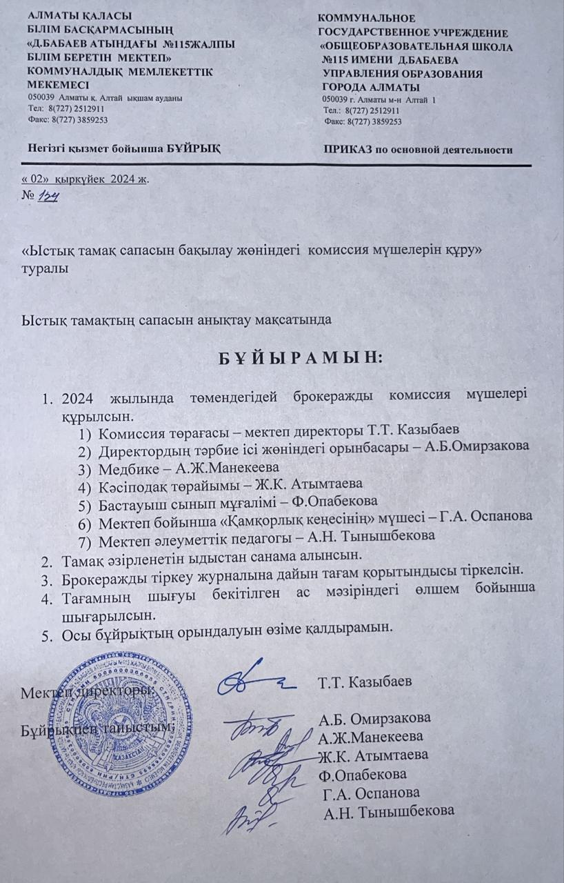 02 сентябрь 2024 0 1 2 3 4 5 Ыстық тамақ сапасын бақылайтын комиссия мүшелерінің қызметі туралы бұйрық Осы беттің QR-коды:QR-код этой страницы: